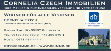 | 55257 | Cornelia Czech Immobilien Binger Str. 16, 55257 Budenheim, www.ccimmo.de |
